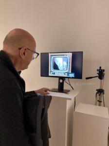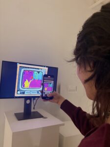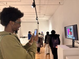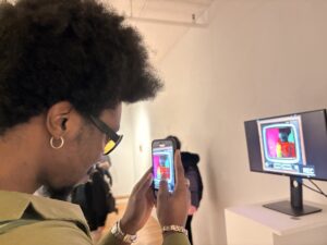 The work uses a webcam that takes a live feed from a video camera to create a generative, interactive portrait that runs in real time on a computer. The viewer’s reflection appears on an old television, echoing the familiar moment of checking oneself through a lens. At first, the image looks steady and ordinary, almost like a front-camera preview. As the viewer moves or draws closer, the reflection begins to shift. Soft blurs appear, features stretch, and the face slowly drifts out of alignment. With continued movement, the image fractures into sharp, scattered pieces until it is no longer recognizable. What begins as a clear, controlled reflection becomes fragile and unstable. At any moment, the viewer may attempt to capture a still frame—though the image may break apart before it can be caught.